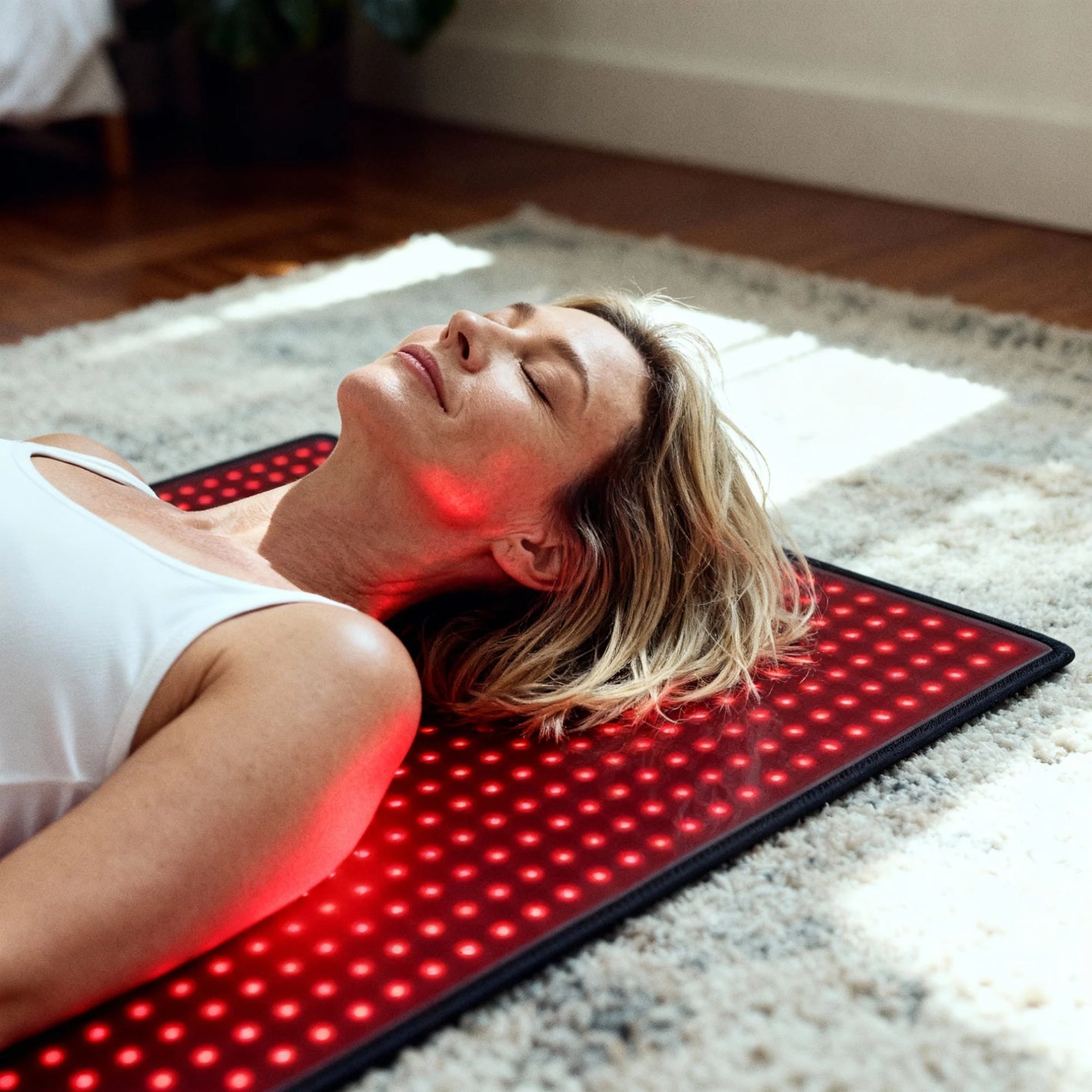 The mat uses red (660nm) and near-infrared (850nm) light to support your body at the cellular level. This light helps boost ATP production, improve circulation, and support the body’s natural recovery processes - which can help reduce inflammation, ease soreness, and improve mobility over time.