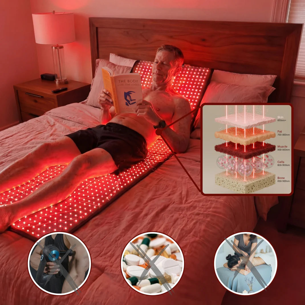 You want to get back to the things you love without pain holding you back, like playing with your family or enjoying your hobbies. The mat combines red light and near-infrared therapy to penetrate deep into your muscles and joints, increasing blood flow to reduce inflammation, speed up recovery, relieve morning stiffness, and improve mobility over time. The full-body design treats your knees, back, shoulders, and joints simultaneously instead of one area at a time like those small handheld devices.